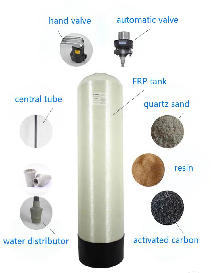 Set Completo di Filtri per Lavaggio Controcorrente e Serbatoio FRP con Valvola di Controllo Automatica e Distributore d'Acqua per Impianti di Trattamento Acque