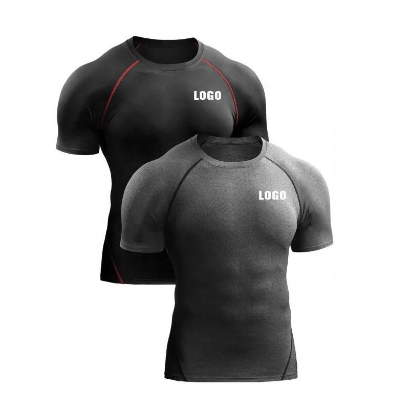 Maglia compressiva uomo elastica ad asciugatura rapida per corsa, pallacanestro e fitness, a manica corta
