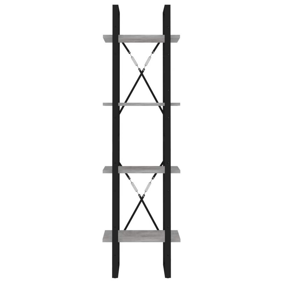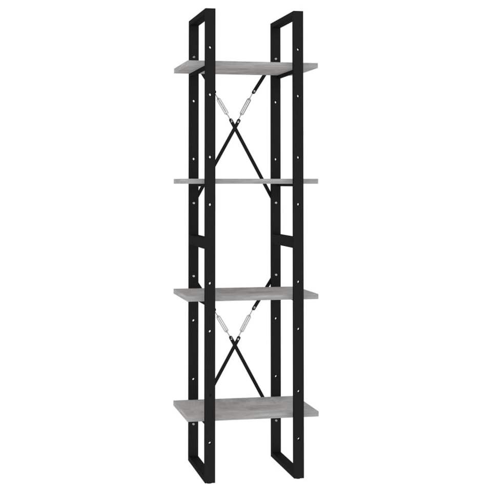 Concrete Gray Bookcase Cabinet with Black Engineered Wood and Metal Medium Modern Home Furniture
