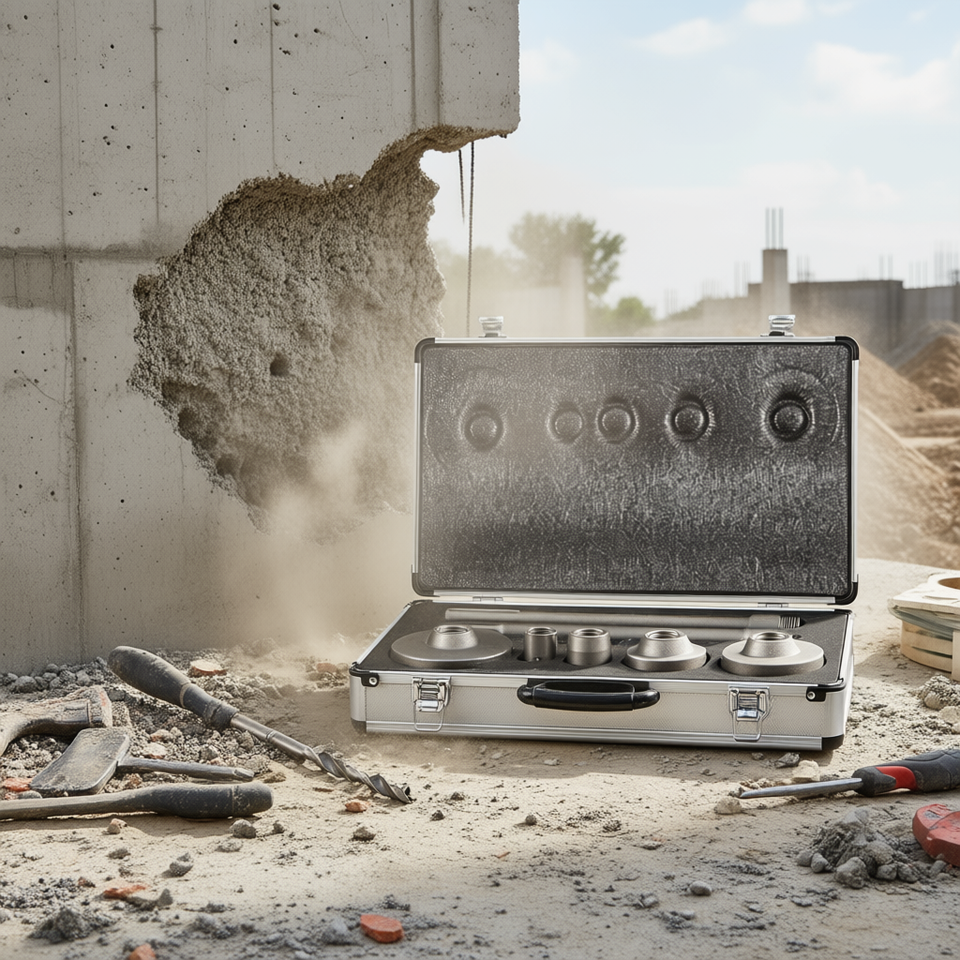 Kit di frese a tazza per cemento con codolo SDS Plus Max da 1-2/11, 1-3/5, 2-9/16, 3-5/32, 3-15/16 pollici per fori nel muro