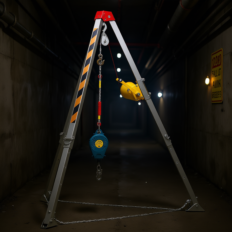 Kit Treppiede per Soccorso in Spazi Confinati, Gambe da 7', Cavo da 98', Capacità 1200 Libbre, Attrezzatura Anticaduta in Alluminio