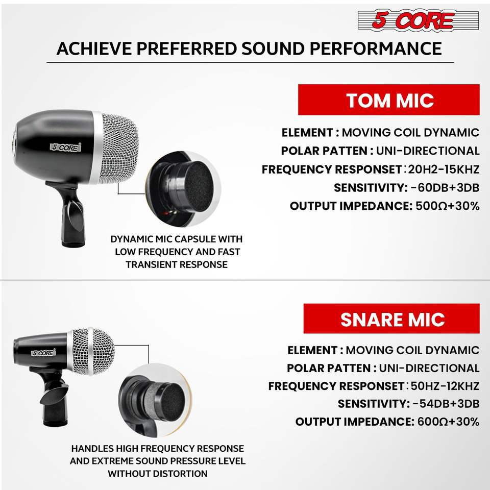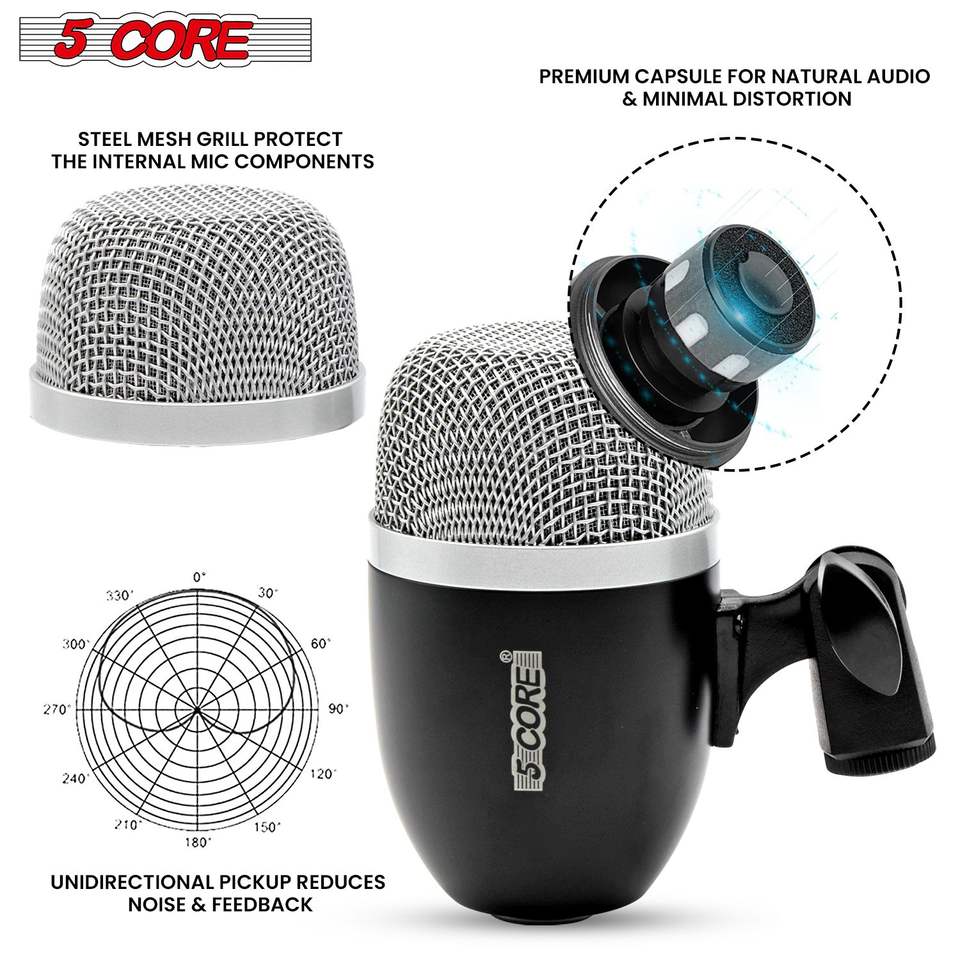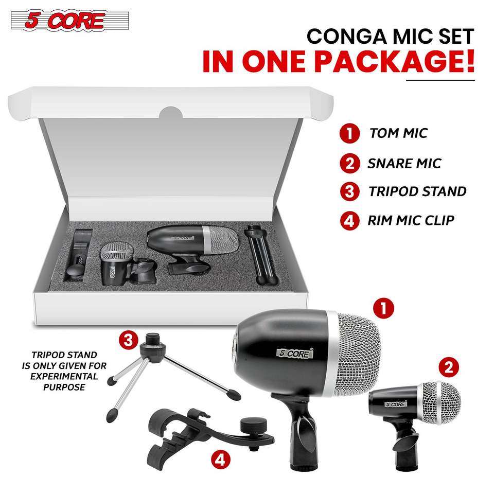 Conga Professional XLR Cardioid Unidirectional Condenser Instrument Microphone Kit Mic Snare Tom Set-BLACK