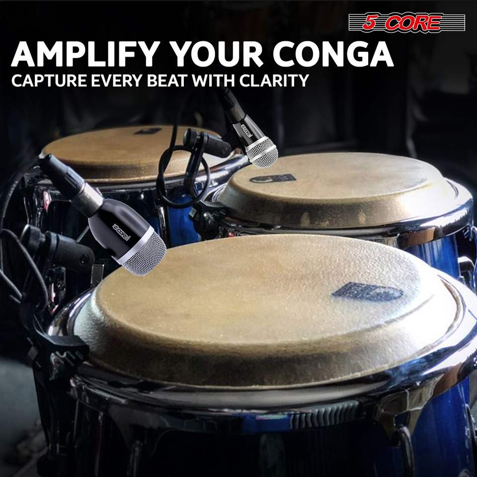 Conga Professional XLR Cardioid Unidirectional Condenser Instrument Microphone Kit Set for Snare Tom Drums-BLACK Model
