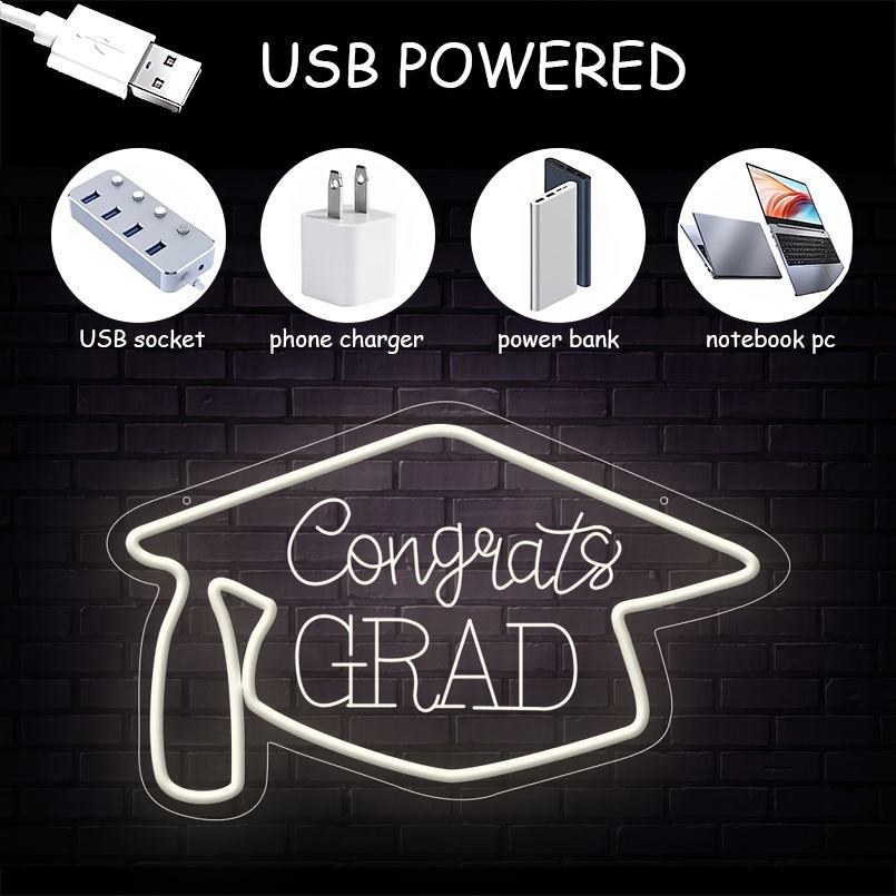 Congrats Grad segno al Neon bianco segno LED luce al Neon per la classe di festa di compleanno evento festa Grad decorazione della parete
