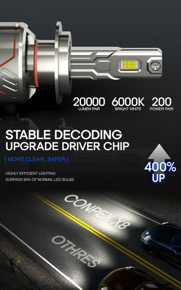 Conpex Auto accessori Auto X8 fari Led lampadina H7 Led faro H1 H3 H11 9005 9006 880 9012 luci Led per Auto
