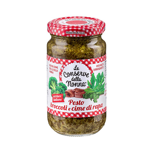 Conserve Della Nonna Italiane, Confezione da 12 Vasetti da 190g, Salsa Pesto per Insalata di Broccoli e Rapa Verde
