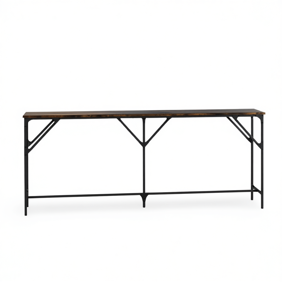 Consolle in Legno di Quercia Affumicata, 78,7 Pollici di Lunghezza, Base a Cavalletto, Design Industriale, Arredamento Moderno per Soggiorno