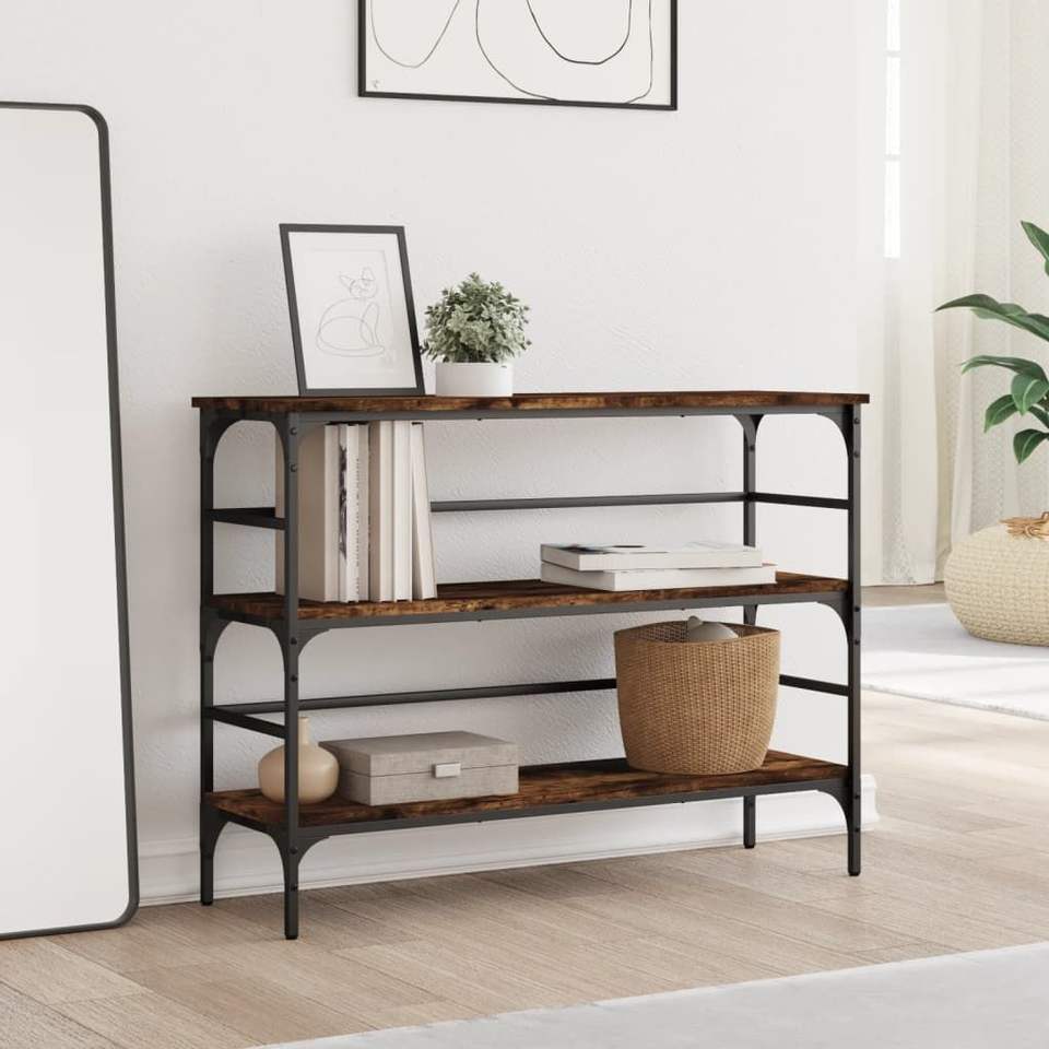 Consolle in Rovere Affumicato e Metallo 100x32x75cm in Legno Ingegnerizzato - Elegante Consolle 100x32x75cm