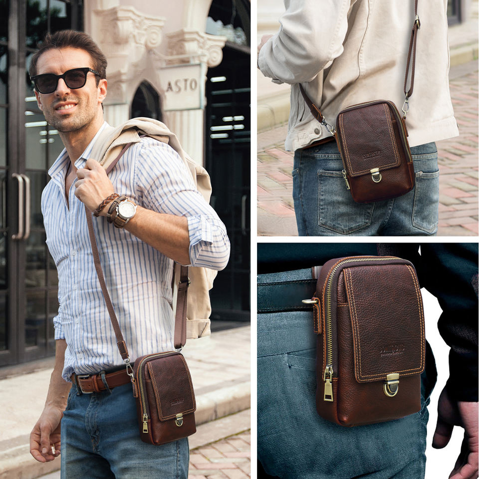 Custodia per telefono in pelle di tutti i giorni con custodia per telefono in vera pelle a tracolla piccola borsa per telefono da uomo