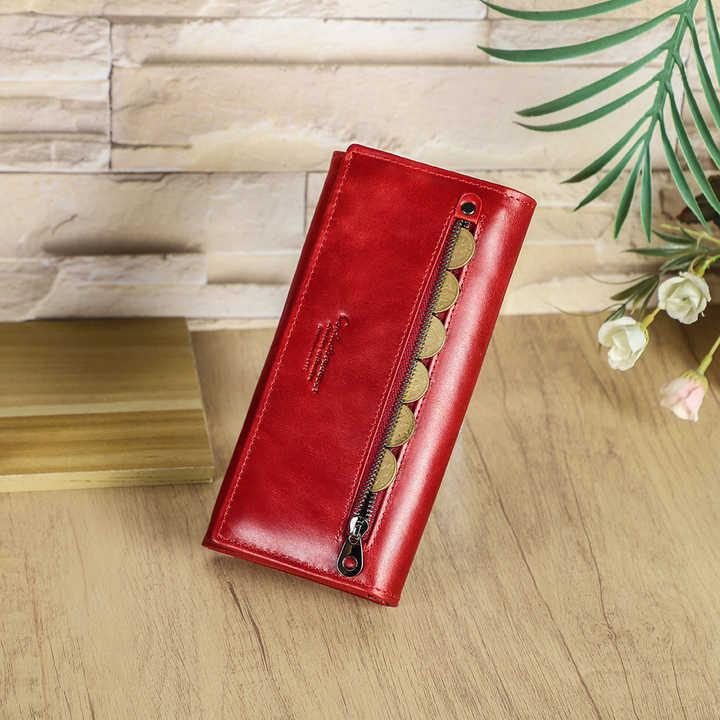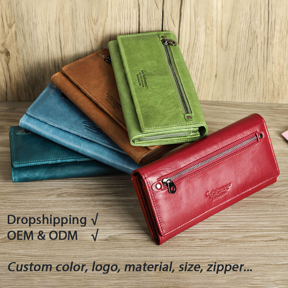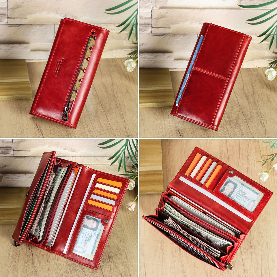 Contact's Genuine Leather Wallet for Women Ladies Bifold Long Wallet Women's Phone Wallet Purse With Zipper Coin Pocket
