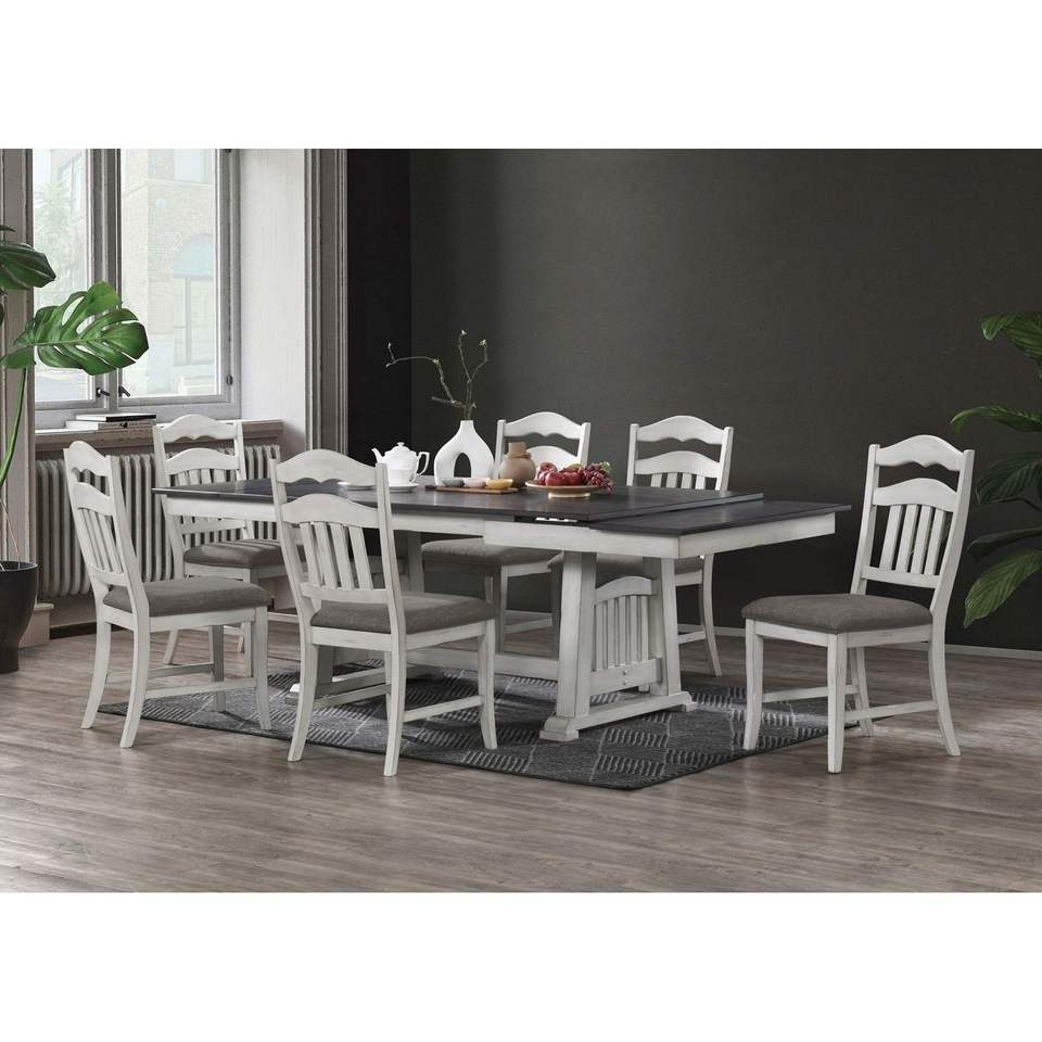 Contemporary 1-Piece Dining Table with 2 Expendable Leaves Antique White and Grey Finish for Kitchen and Dining Room