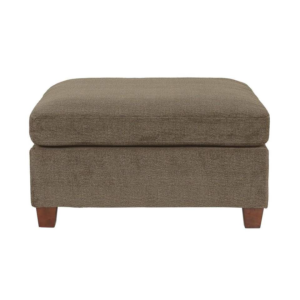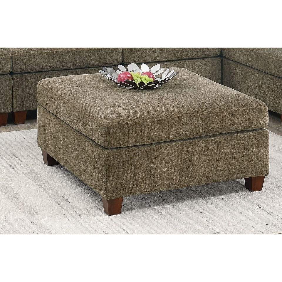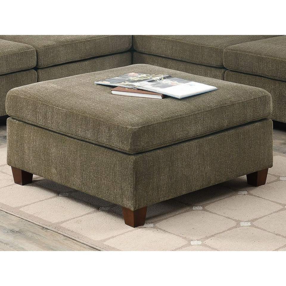 Divano Angolare Modulare Contemporaneo in Tessuto Chenille Color Beige con Pouf per Arredamento Soggiorno