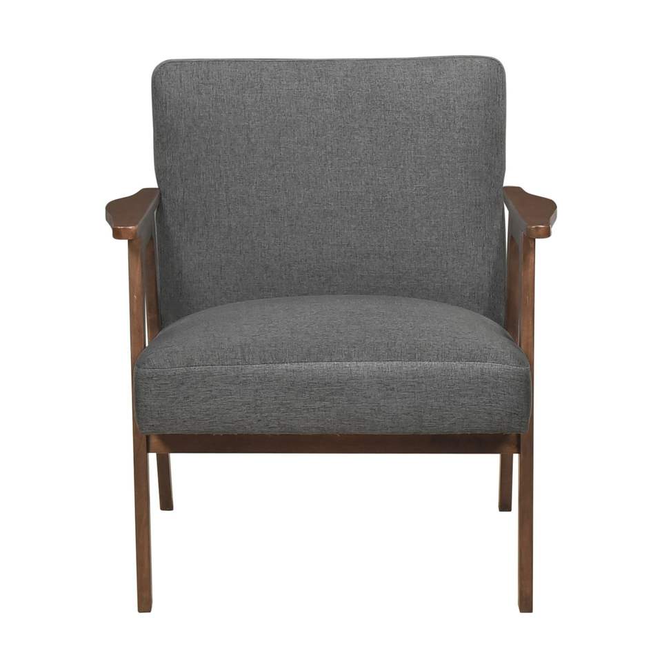 Contemporaneo 1pc accento sedia grigio scuro rivestimento in tessuto marrone finitura massello in legno di gomma mobili per la casa moderna per il soggiorno