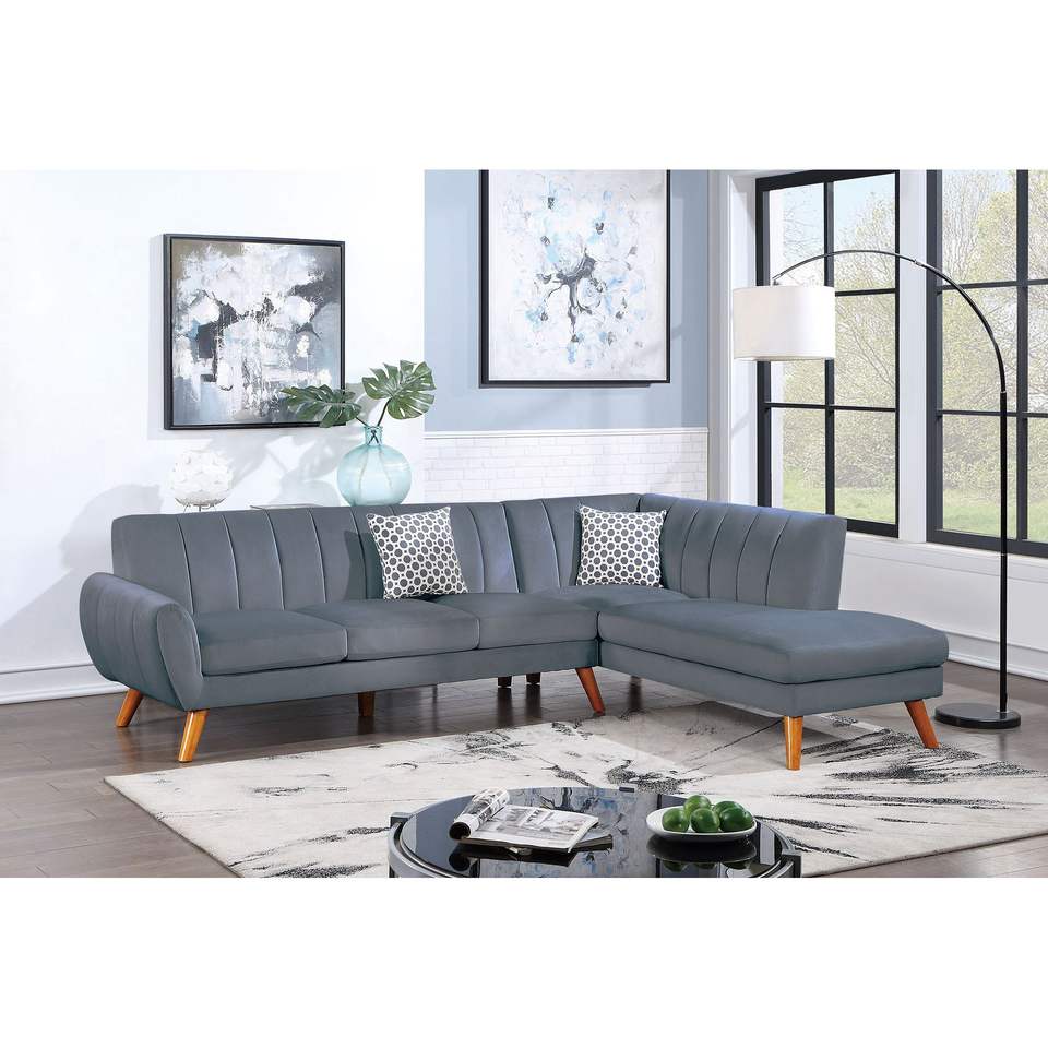 Set di Mobili Contemporanei per Soggiorno in 2 Pezzi, Divano Componibile in Velluto Grigio Scuro con Chaise Longue a Destra e Cuscini Morbidi