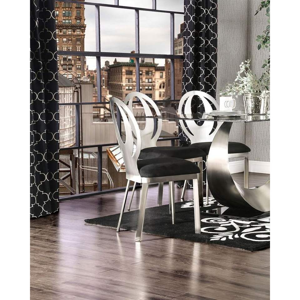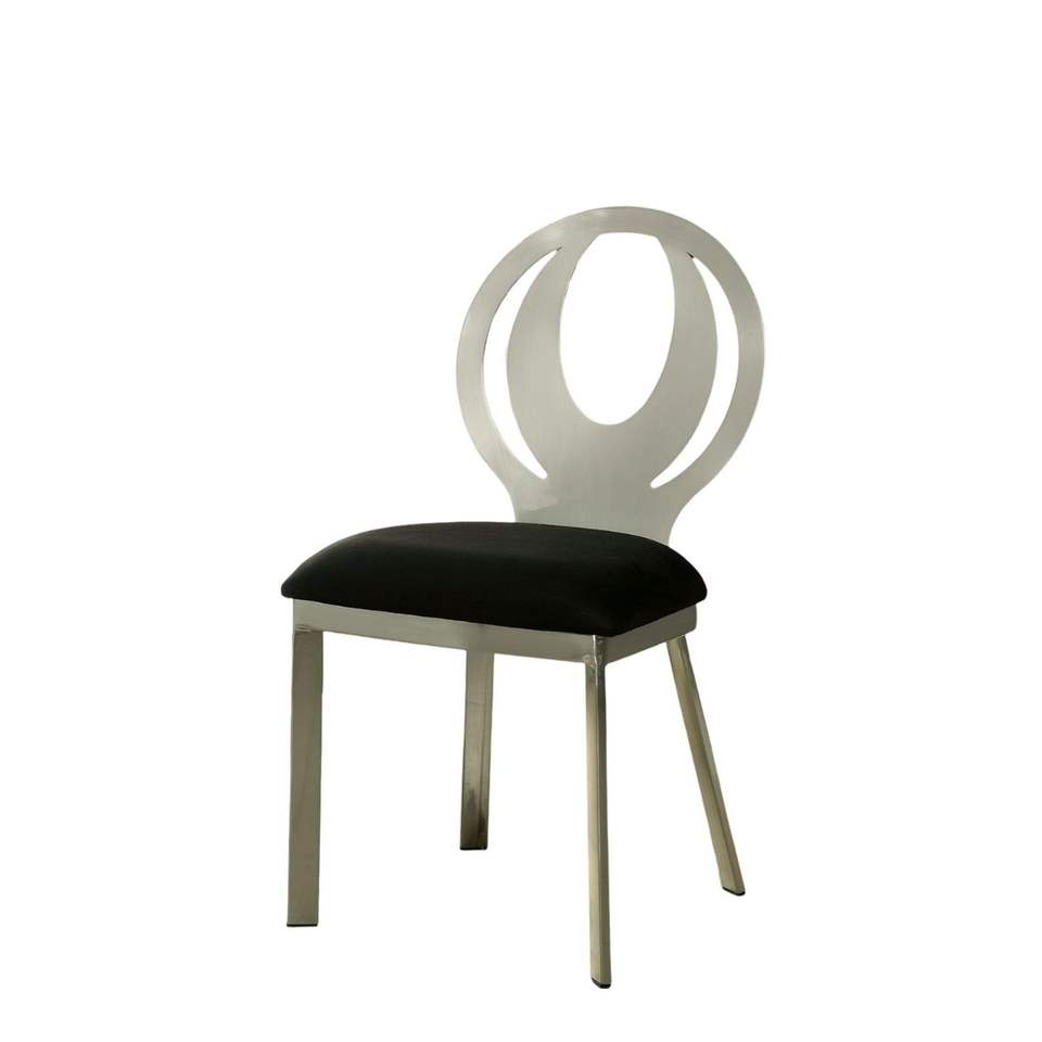 Set di 2 Sedie da Pranzo Contemporanee con Telaio in Metallo Argento, Seduta in Microfibra Nera e Schienale Ovale