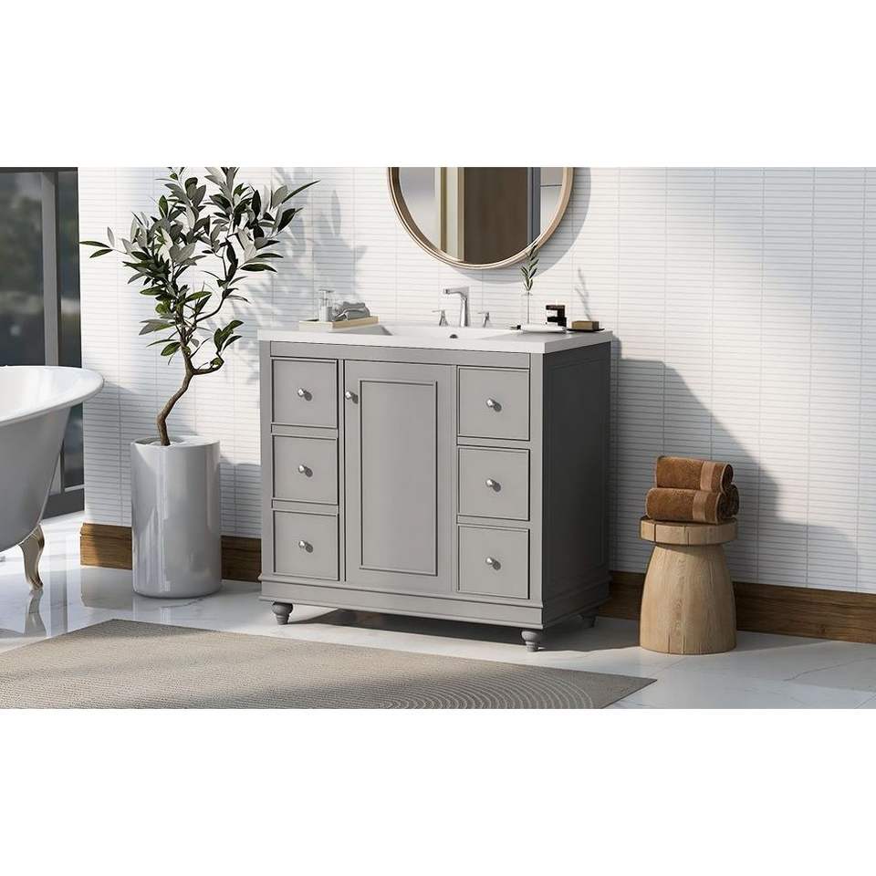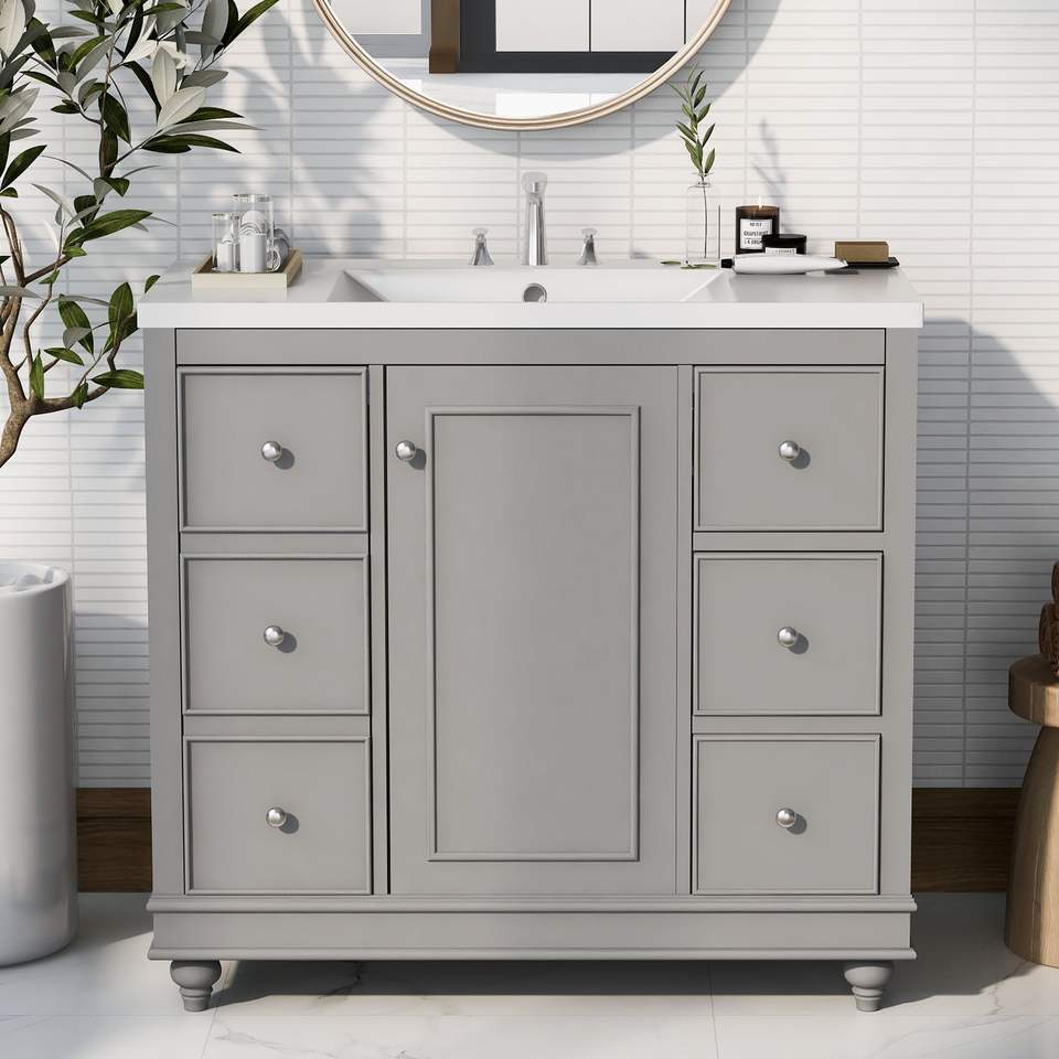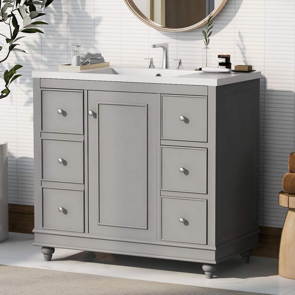 Mobile Bagno Contemporaneo 36x18x34 Pollici con 4 Cassetti e 1 Anta, Multiuso in Resina con Vano Portaoggetti Integrato