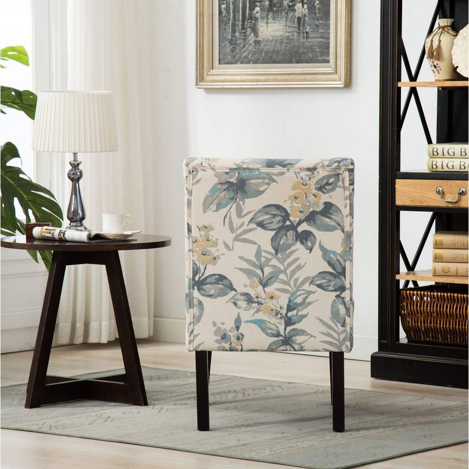 Contemporary Armless Accent Chair with Blue Leaves Print Fabric Capa Series for Living Room