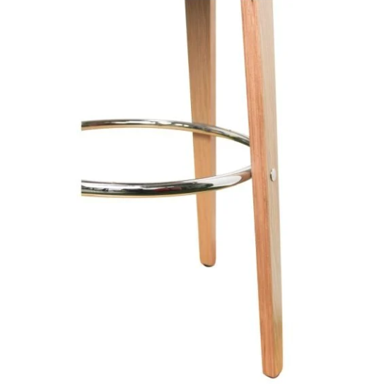Sgabello da Bar Contemporaneo Senza Schienale in Legno con Cuscino Imbottito e Anello Poggiapiedi in Metallo Nero PU per Bar, Club o Cucina