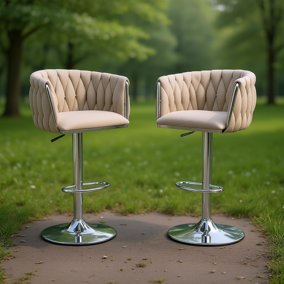 Sgabelli da bar contemporanei in tessuto, altezza regolabile, base cromata, sedia girevole da bancone, set di 2