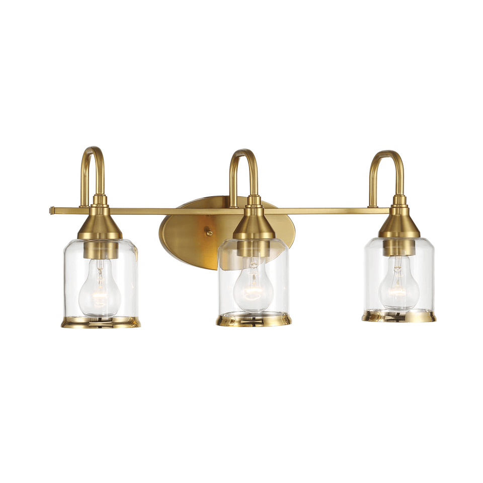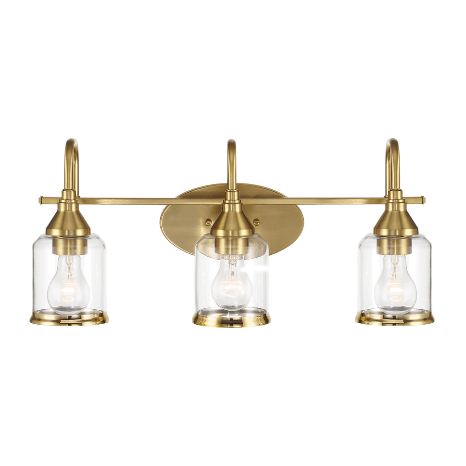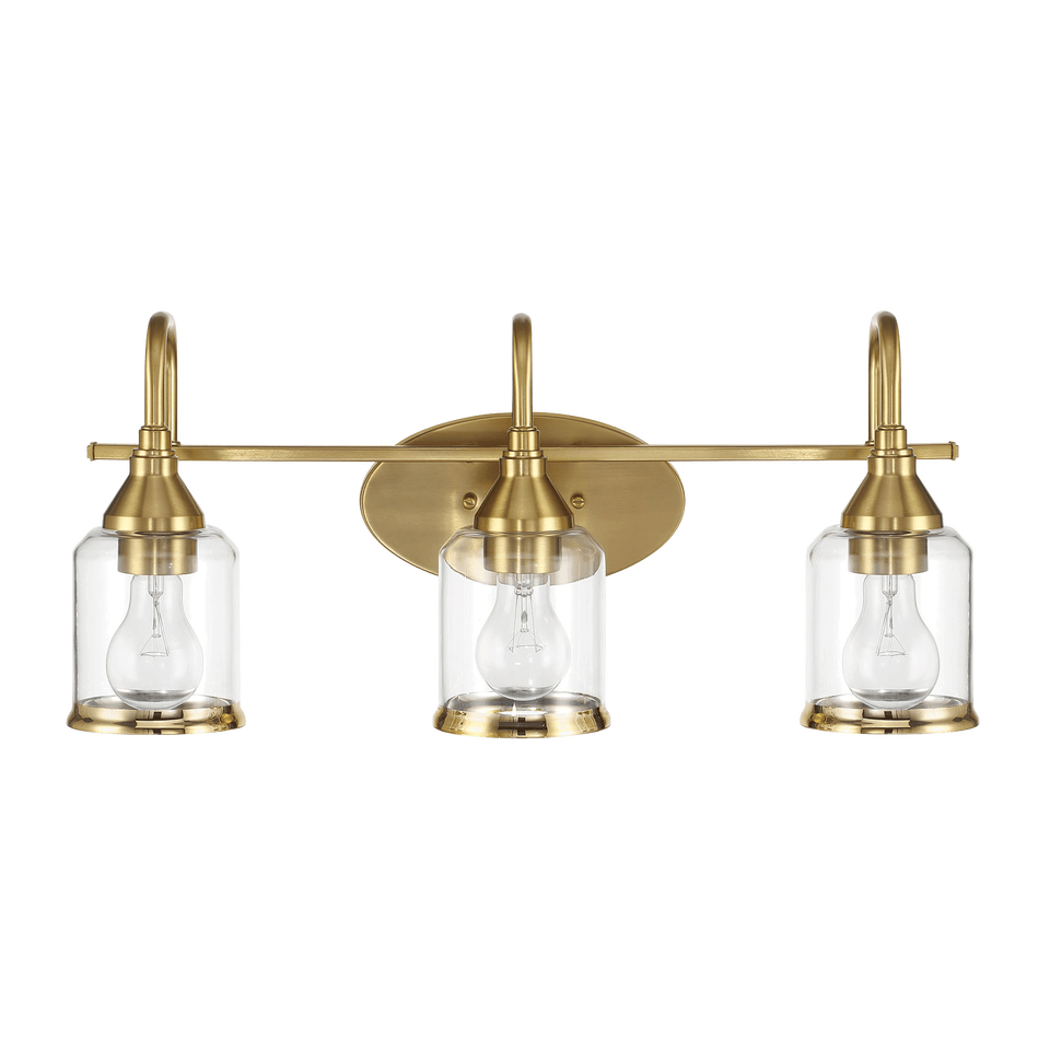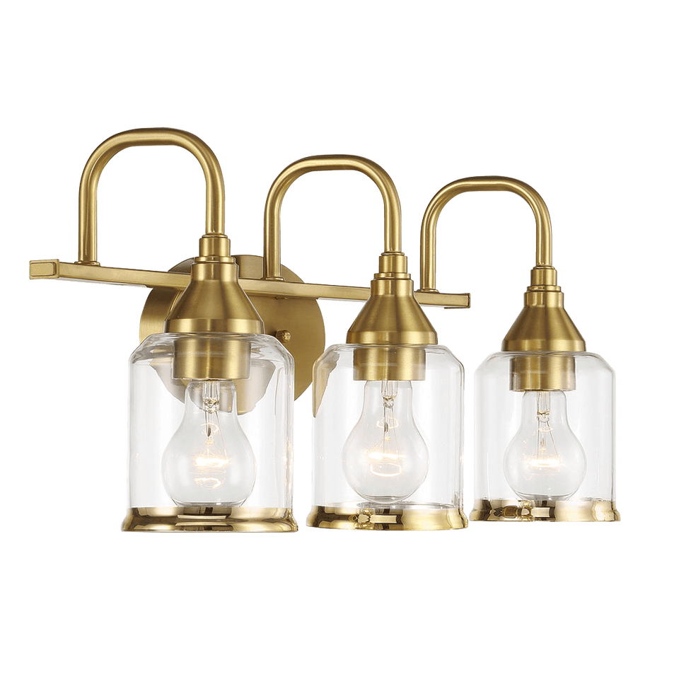 Lampada da Bagno Contemporanea Twilight a Tre Luci in Oro Spazzolato 22'L x 10'H x 7.48'P con Vetro Trasparente