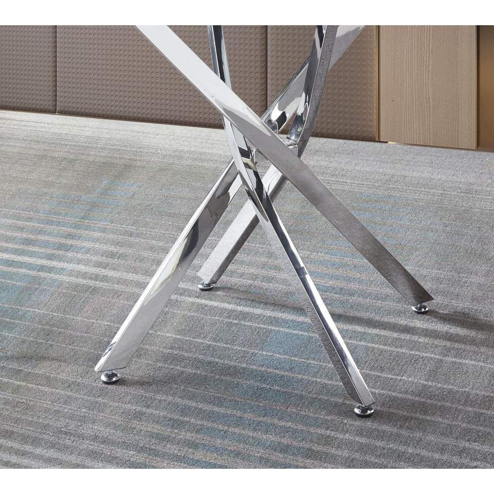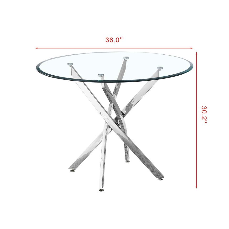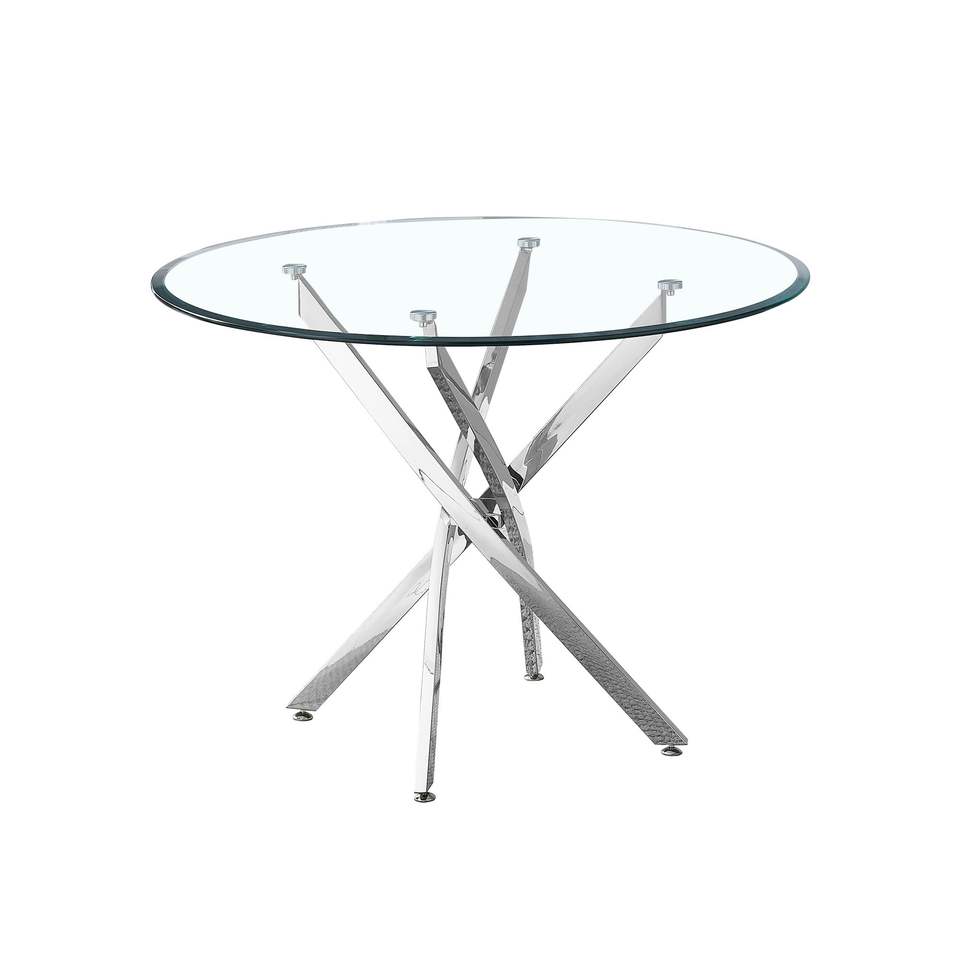 Tavolo da Pranzo Contemporaneo in Vetro Temperato Trasparente con Gambe in Acciaio Inossidabile Finitura Argento, Tavoli da Pranzo Rotondi Contemporanei