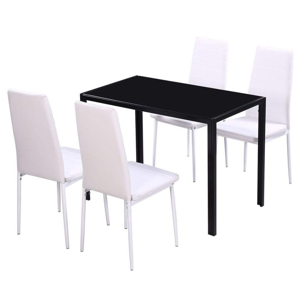 Contemporary Design Dining Room Set 4 White Chairs with 1 Table