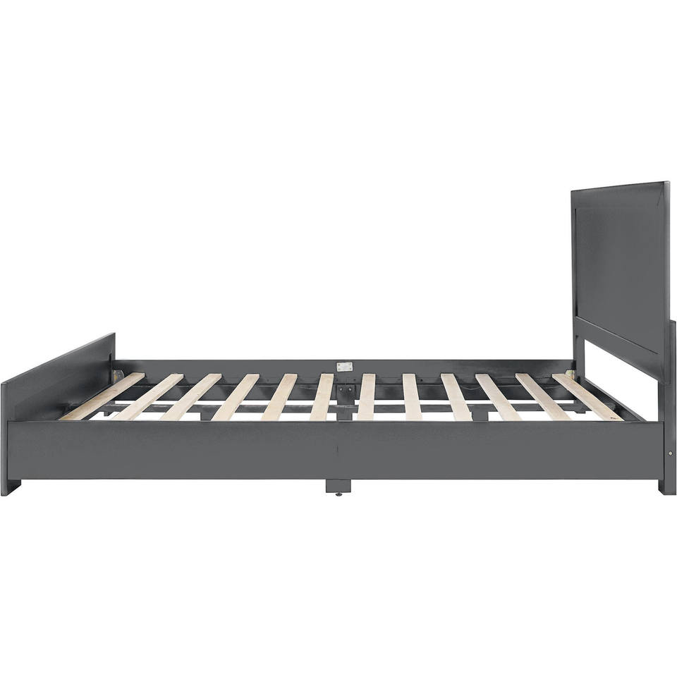Contemporary French King Bed Frame Solid Mango Wood Gray Inlaid Panels Modern Extendable for Farmhouse Use Double Queen Options