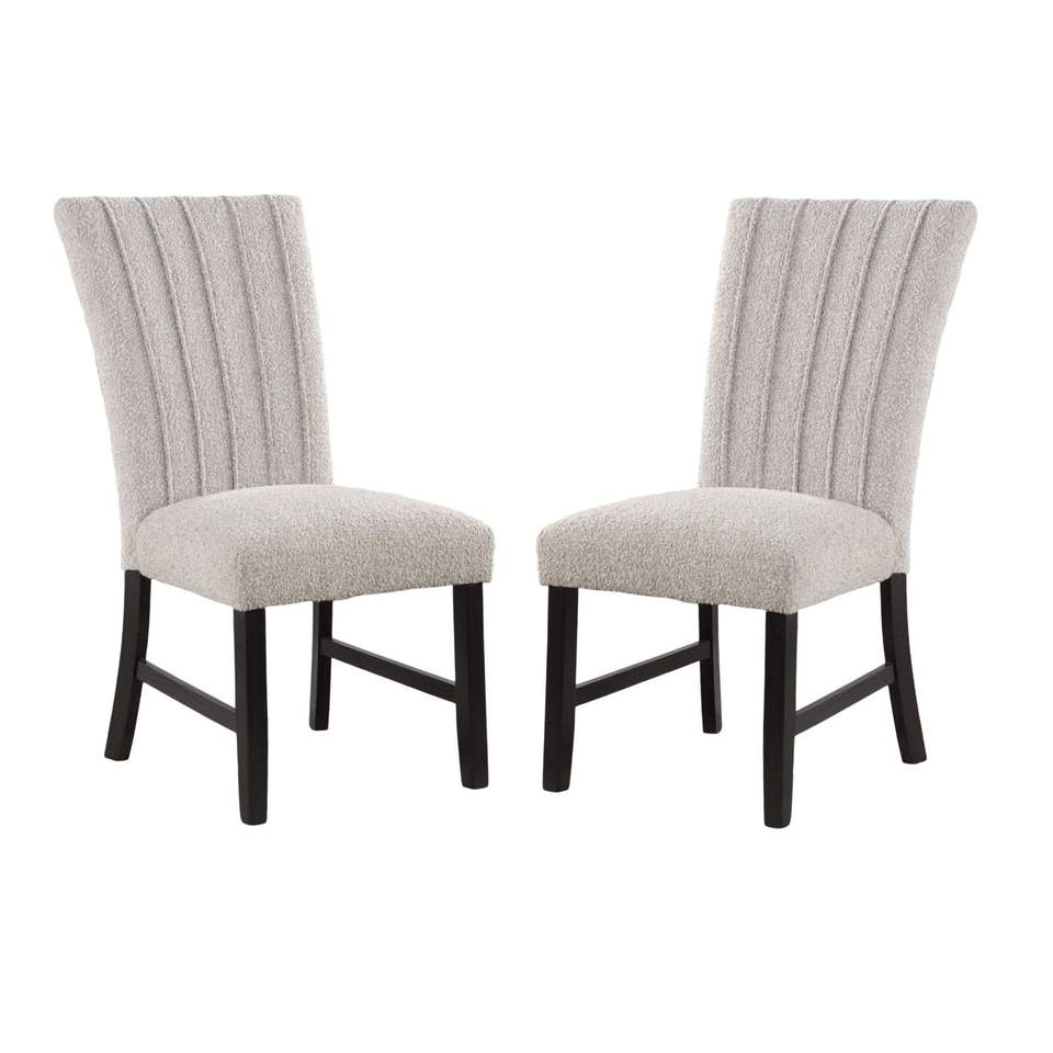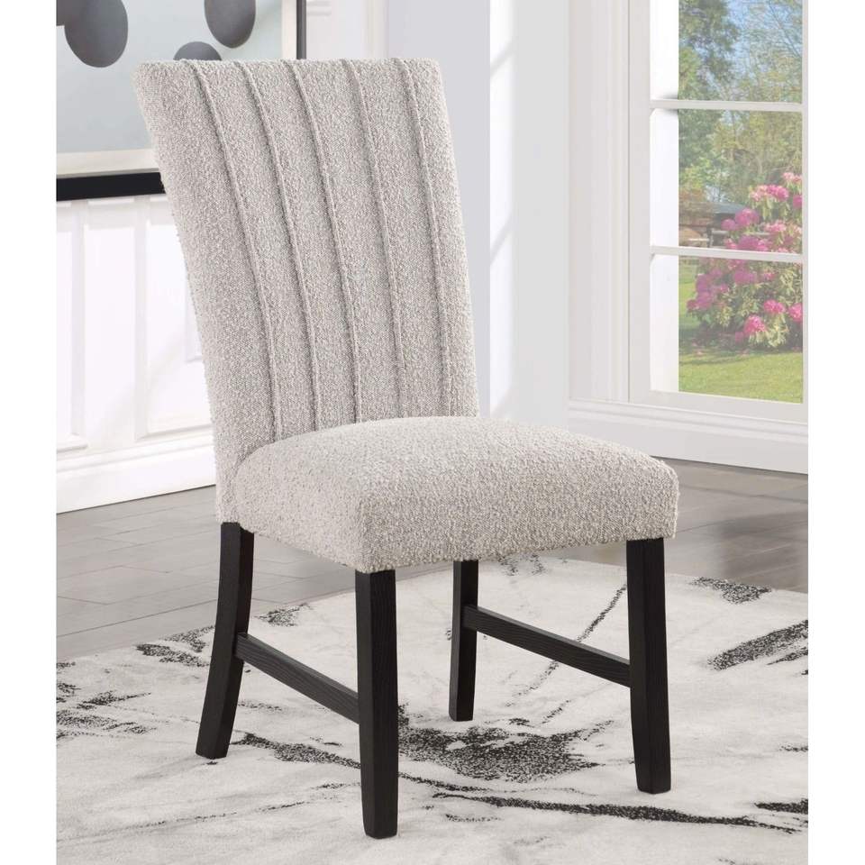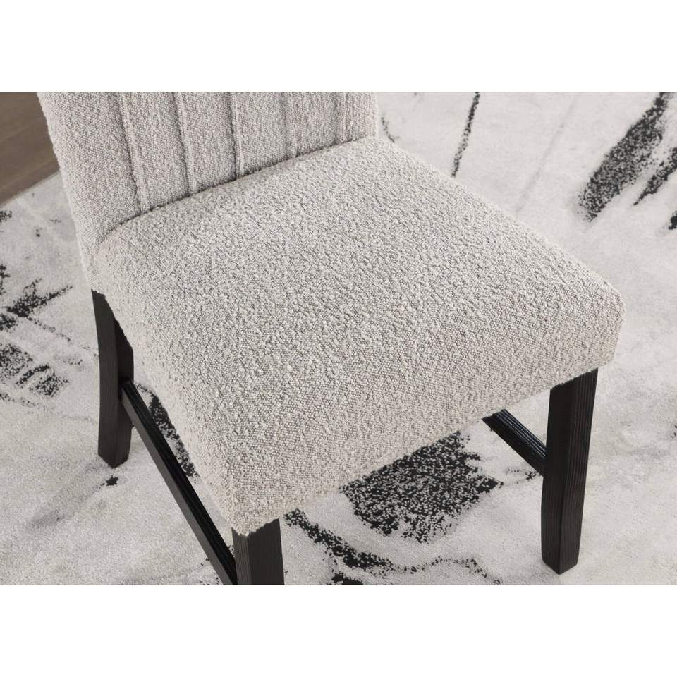 Set di 2 Sedie da Pranzo Contemporanee in Tessuto Bouclé Grigio con Gambe in Legno Nero, Stile Unico e Moderno