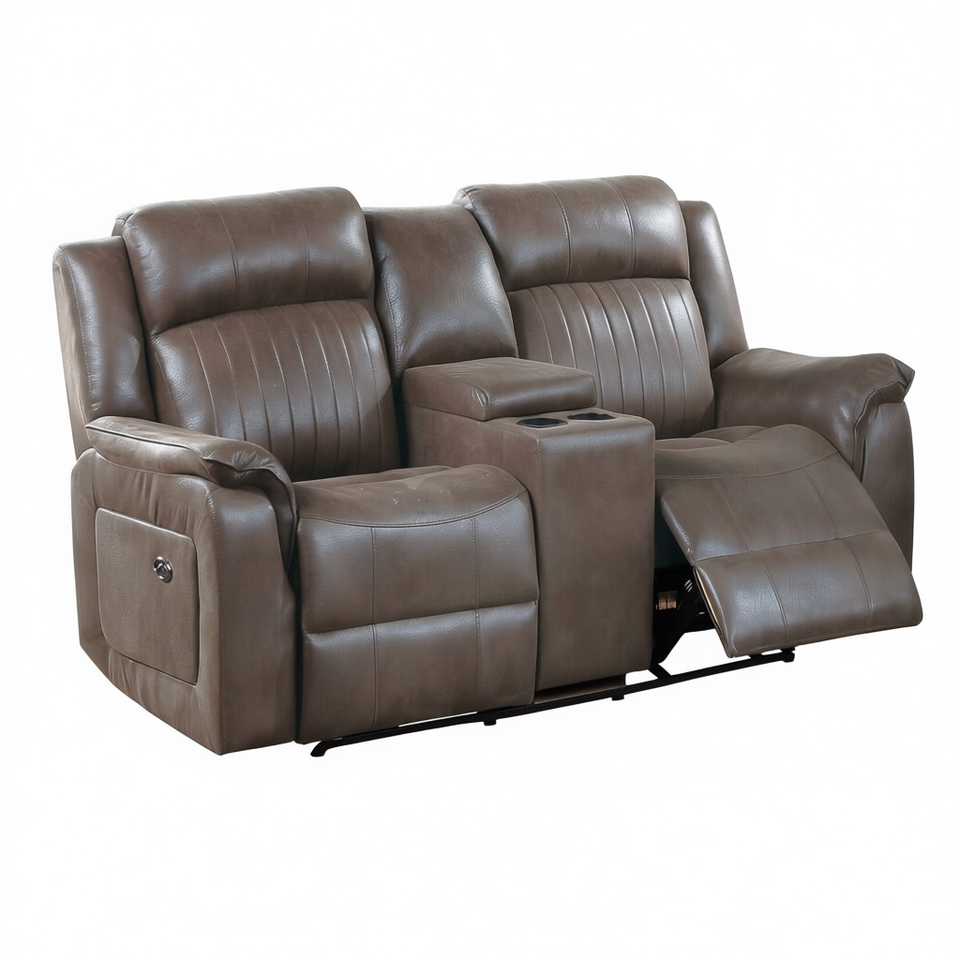 Power Motion Loveseat Dark Coffee Genuine Leather Recliner Couch With Console Living Room Furniture