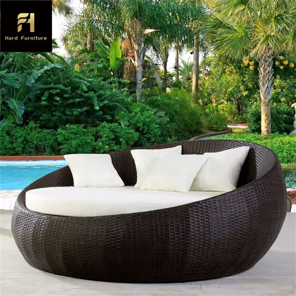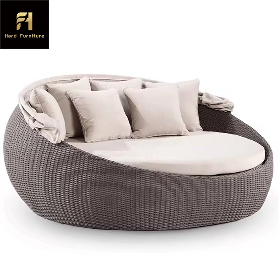 Contemporaneo divano rotondo in vimini Rattan divano divano letto portatile all'aperto lettino per ville per dormire e sonnecchiare al sole