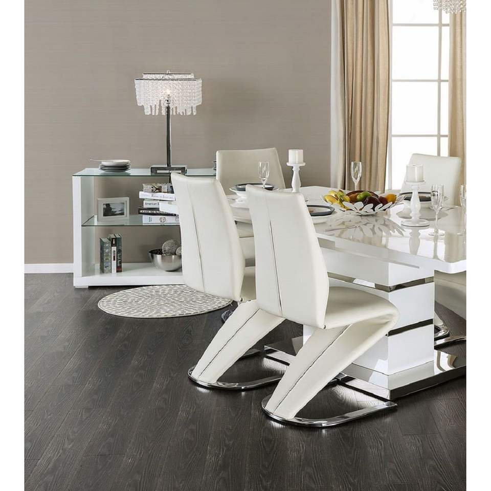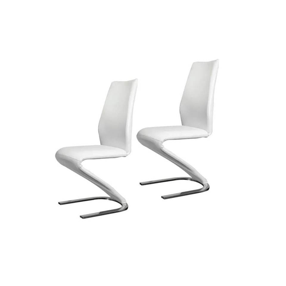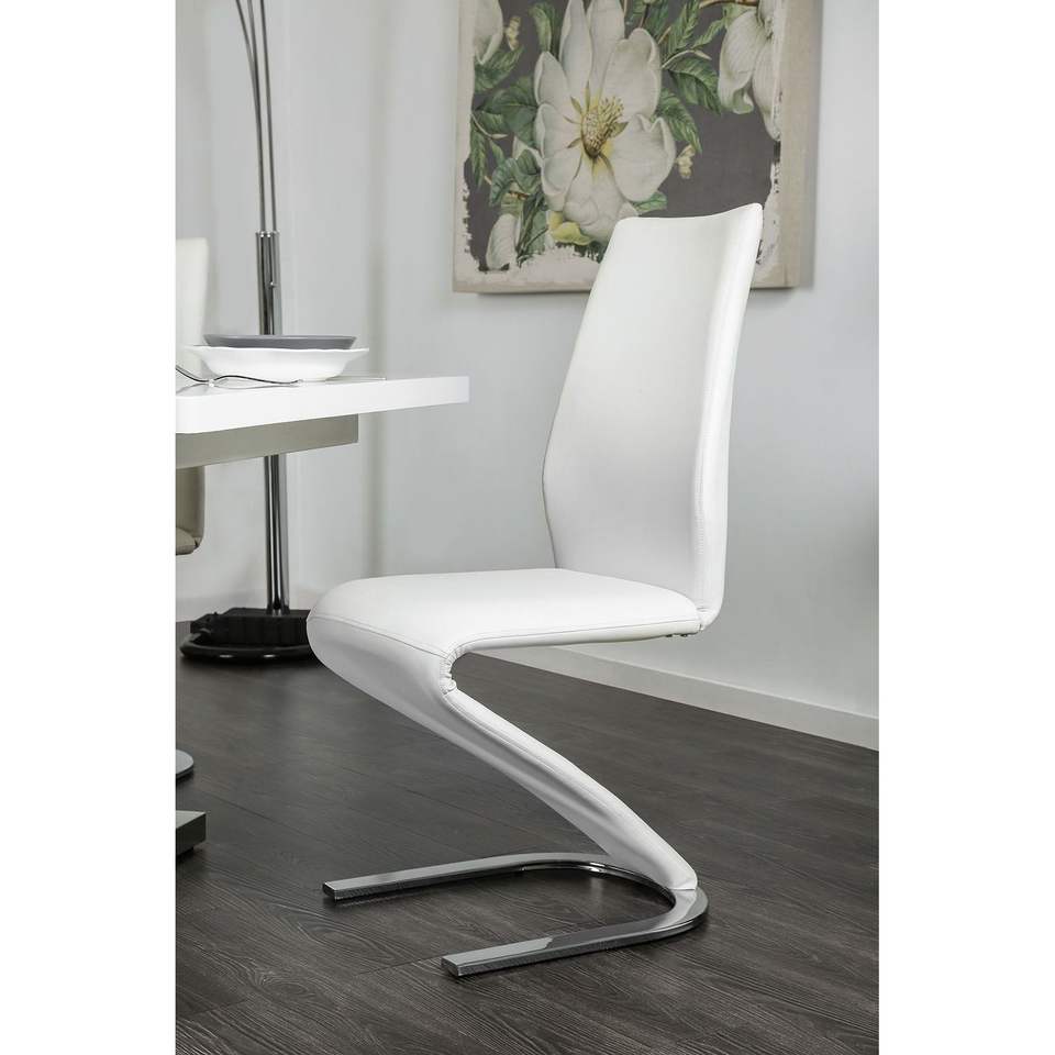 Base per sedia contemporanea a forma di Z in similpelle bianca, 2 sedie da pranzo con finitura cromata per arredamento casa o ufficio