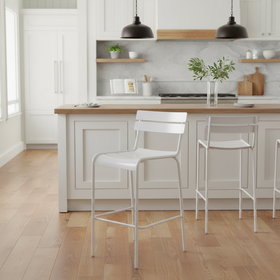 Contemporary White Metal Bar Chair Modern Farmhouse Style for Kitchen and Home Bar PU Fabric and Iron Wood Frame Bar Stools