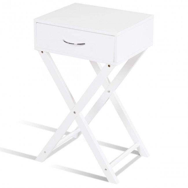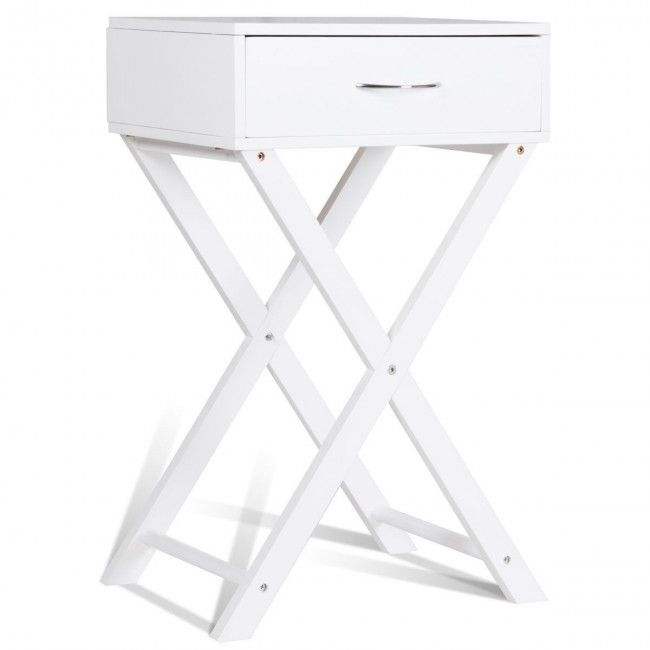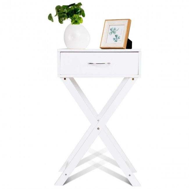 Comodino Contemporaneo a X con Cassetto, Tavolino Moderno d'Appoggio