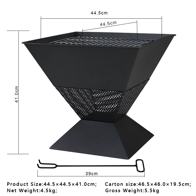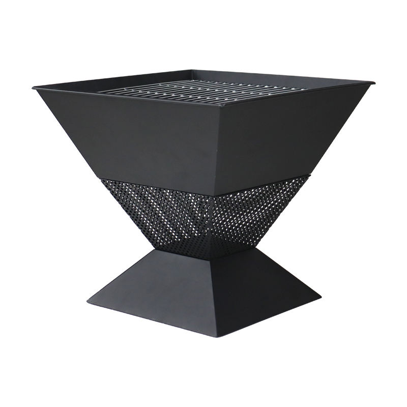 Contemporary square Outdoor Metal Fireplace Cup-shaped Design Plus BBQ Grill With Wood or Charcoal Burning in Garden