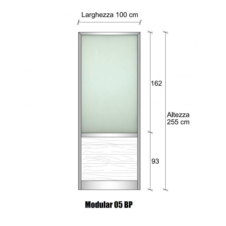 Modulo Continuo per Parete Divisoria in Ossido d'Argento 2550xl1000mm - Finestra in Perle di Vetro Satinato per Camera da Letto H2550xl1000 mm Modulo Continuo