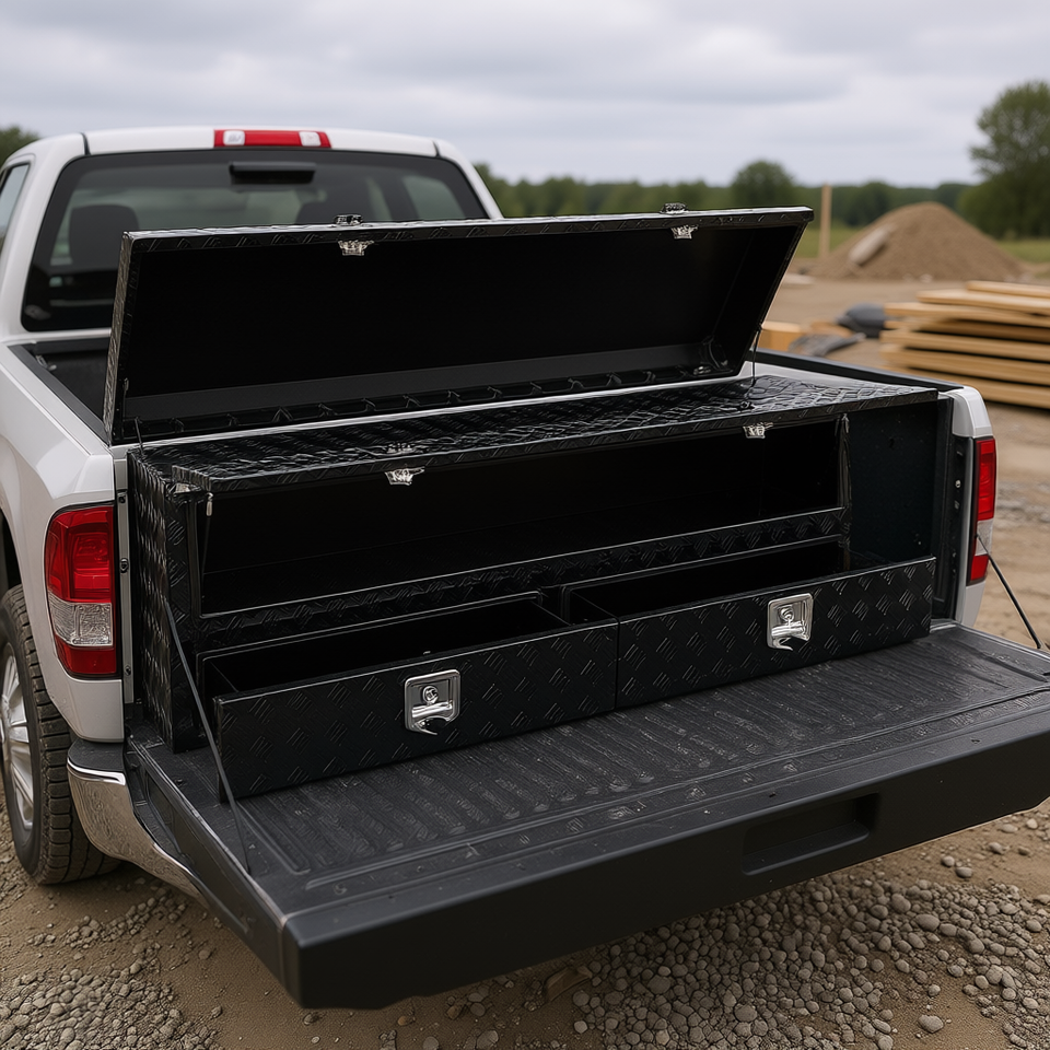 Cassetta Portautensili in Alluminio per Camion, 72 x 21 x 13,5 Pollici, Resistente alle Intemperie, con Sportello a Ribalta e Chiusura a Scatto, in Lamiera Diamantata