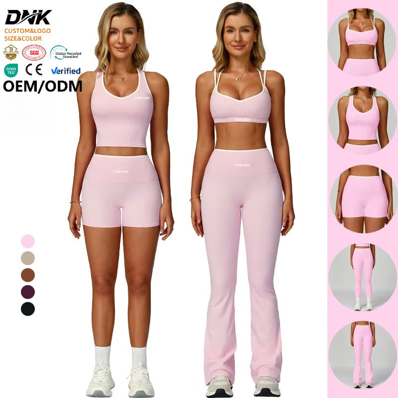 Completo Sportivo Donna a Contrasto, Top Corto con Schiena Incrociata e Leggings a Vita Alta, Set Yoga e Allenamento