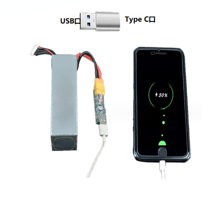 Conversion from airplane model battery to USB fast charger XT60 plug 3S-6S lithium battery fast charging conversion in outfield