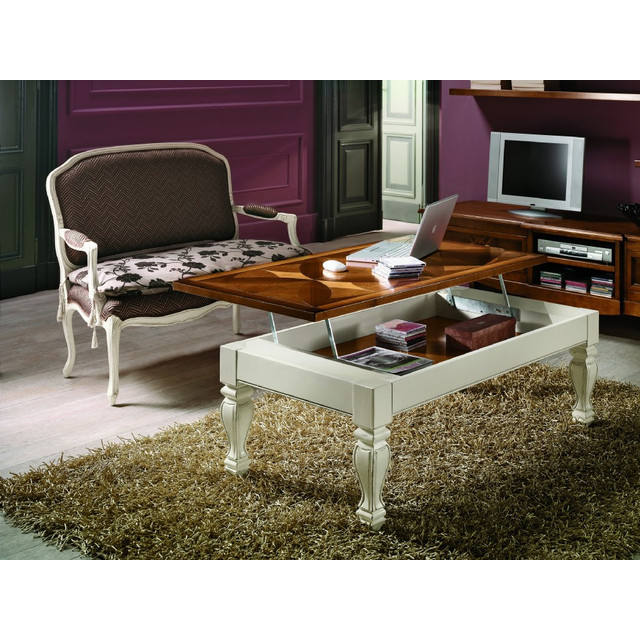 Convertible Vintage Four-Leaf Clover Inlay Coffee Table Rising Top Classic Living Room Furniture for Entry Use MDF Wood Style