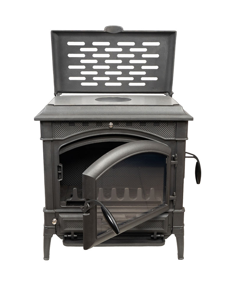 Stufa a Legna in Ghisa Utilizzabile per Cucinare. Caminetto da Interno dal Design Moderno. Direttamente dalla Fabbrica