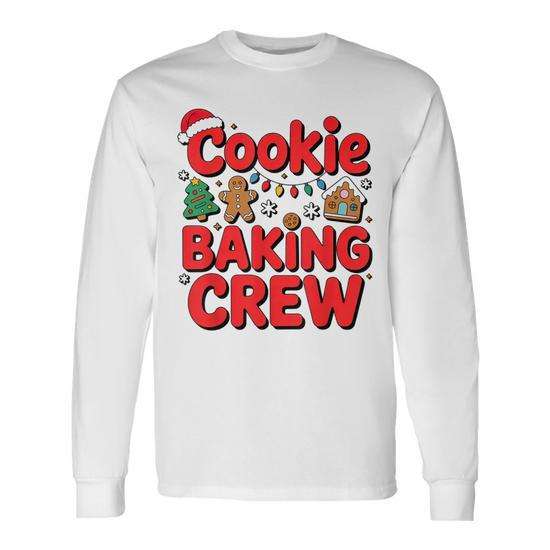 Cookie Baking Crew Long Sleeve T-Shirt Christmas Gingerbread Design Adult Unisex Crew Neck Digital Printing