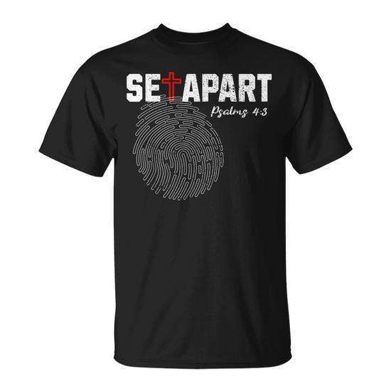 T-shirt cristiana accattivante con versetti dai Salmi 4 e 3, Impronta di Gesù che lo distingue, Articolo promozionale