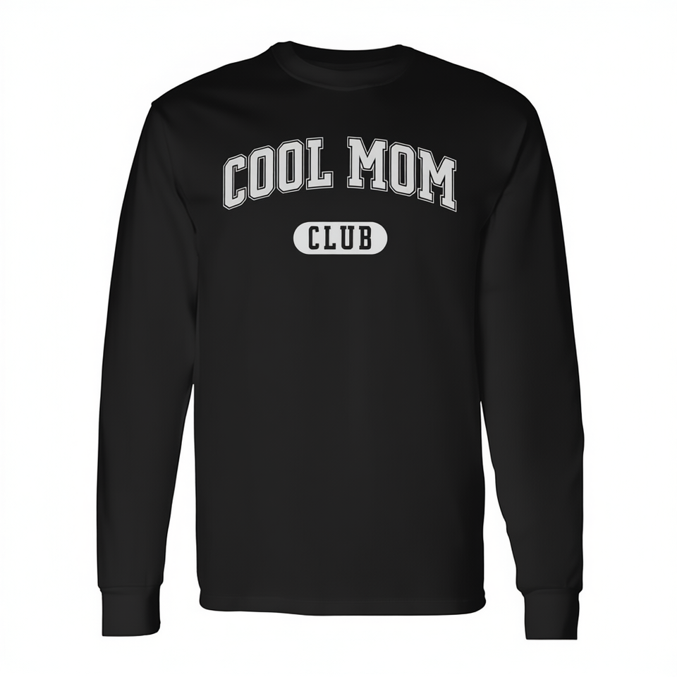 T-shirt a maniche lunghe Cool Mom Club nera, taglia unisex per adulti