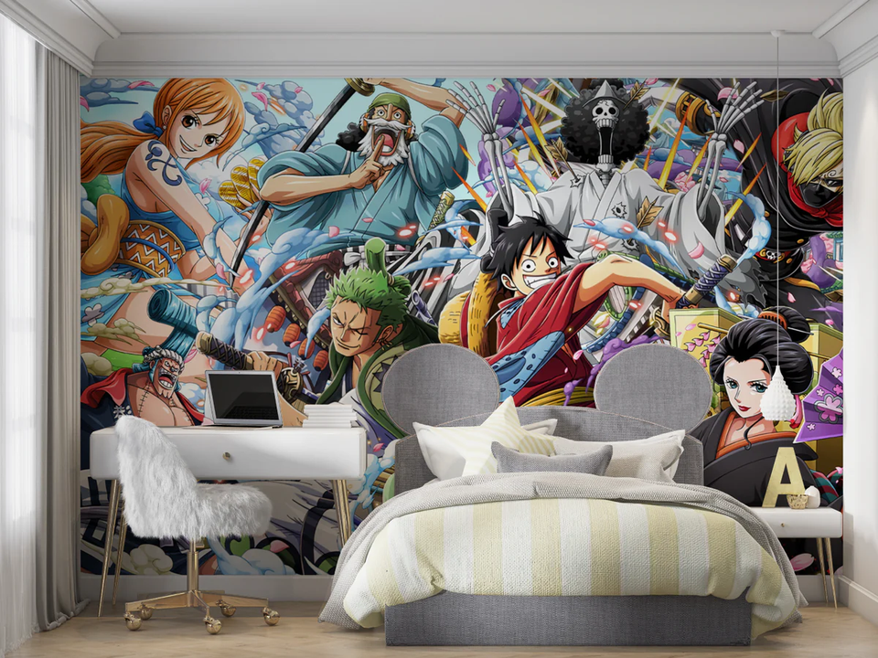 Caratteristica:Fantastico murale di carta da parati con personaggi anime di One Piece