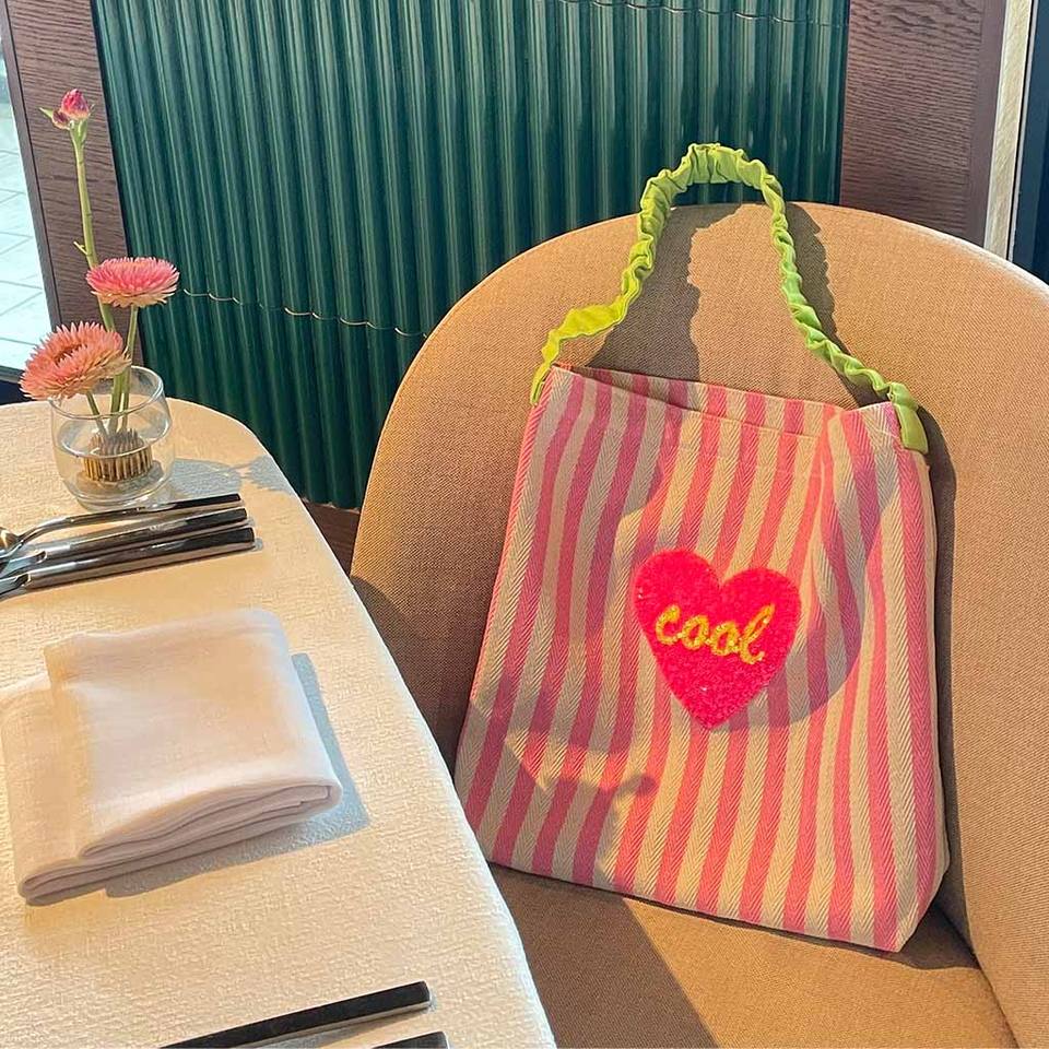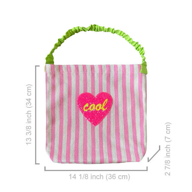 Cool Patch Motif Open Closure Stripe Canvas Tote Bag