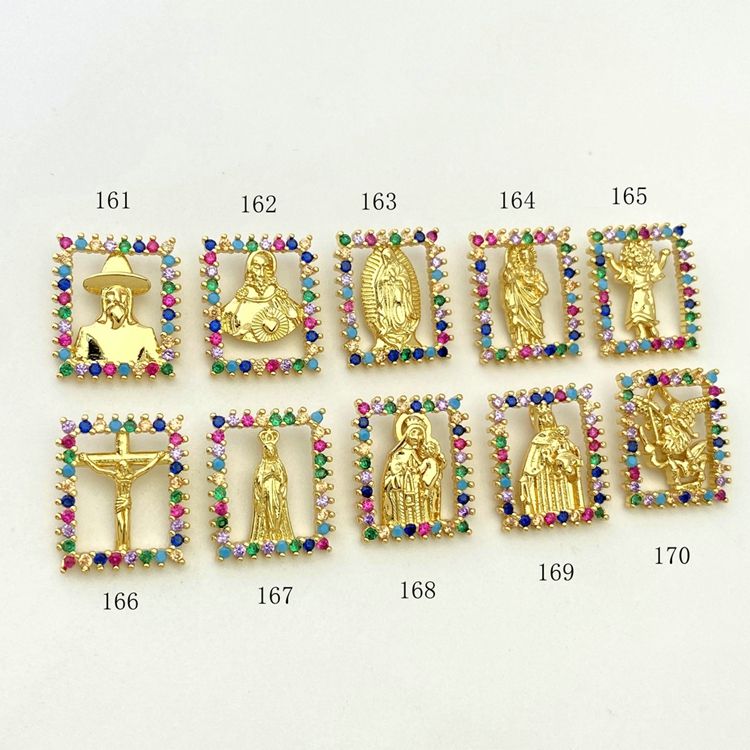 Raffredda rettangolo religiosi santi cristiani modello con gemme colorate placcato in oro 18K ciondolo ciondolo in ottone rame