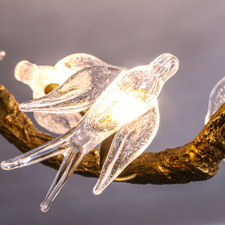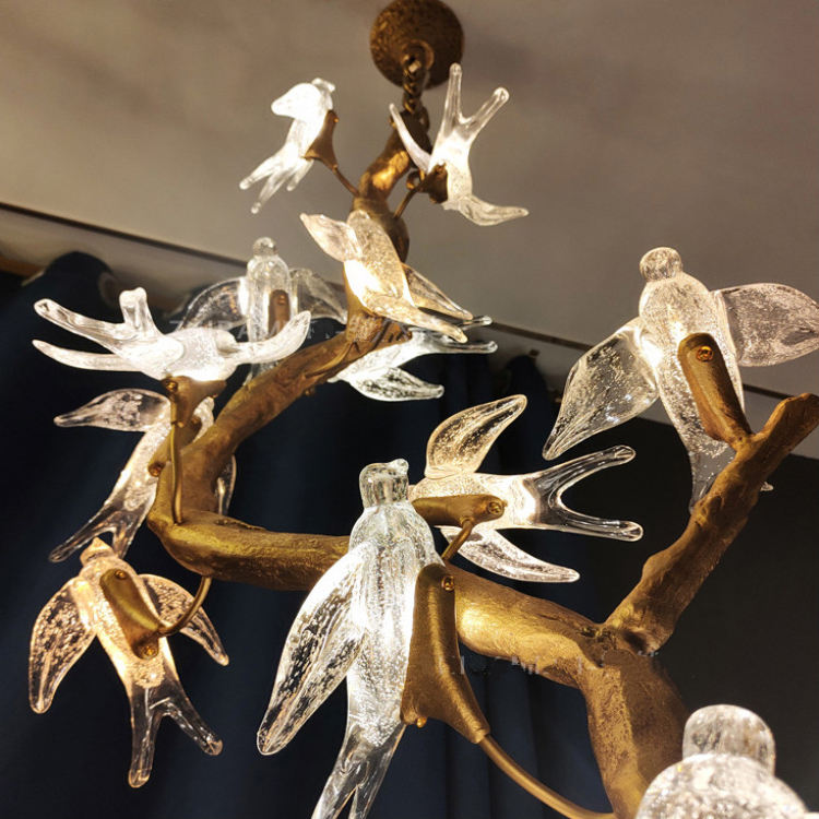 Copper Branch Chandelier Nordic Luxury Pendant Lamp Decorative Swallow Twitter Cute Birds Hanging Lights