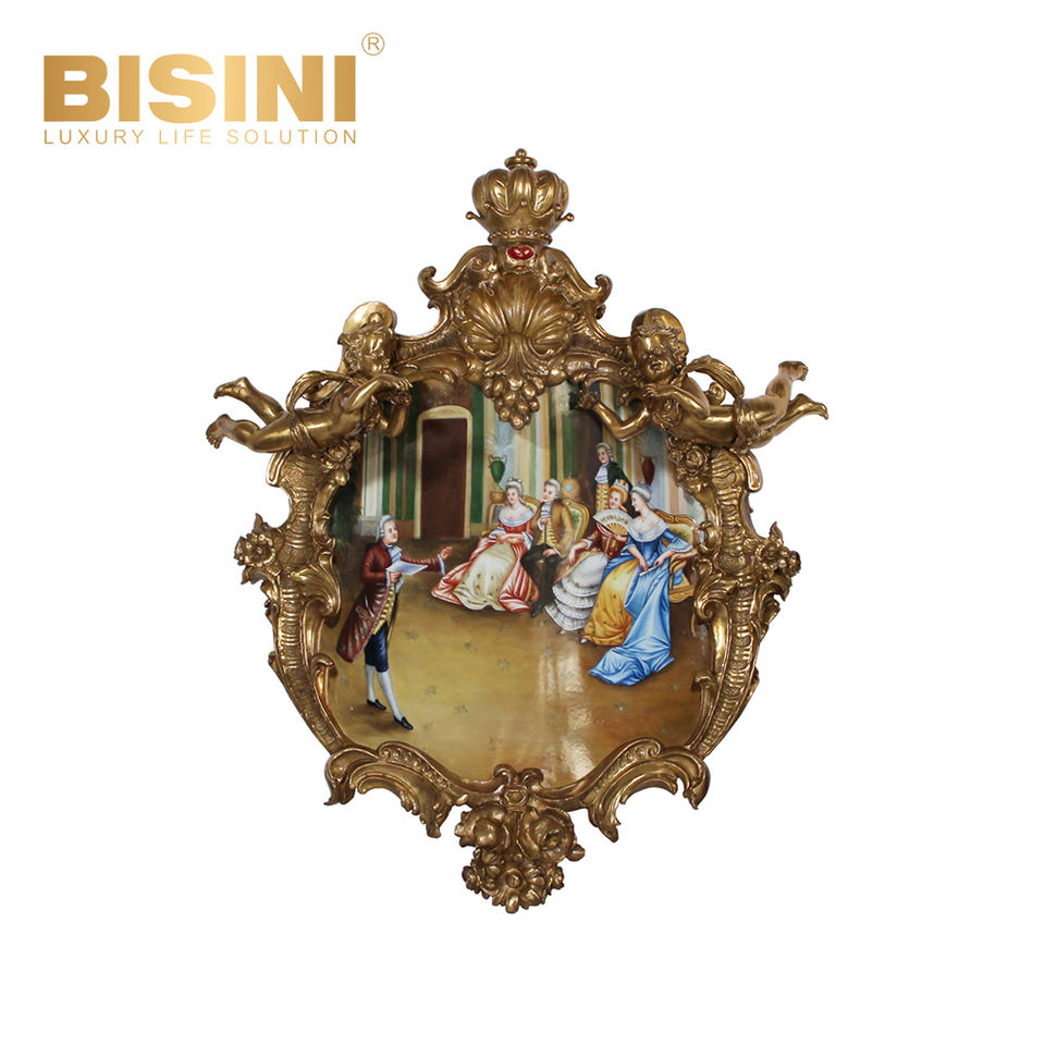 Decorazione Murale con Cornice in Rame, Dipinto in Stile Europeo con Figure di Corte in Gioco, Raffinata Decorazione da Parete