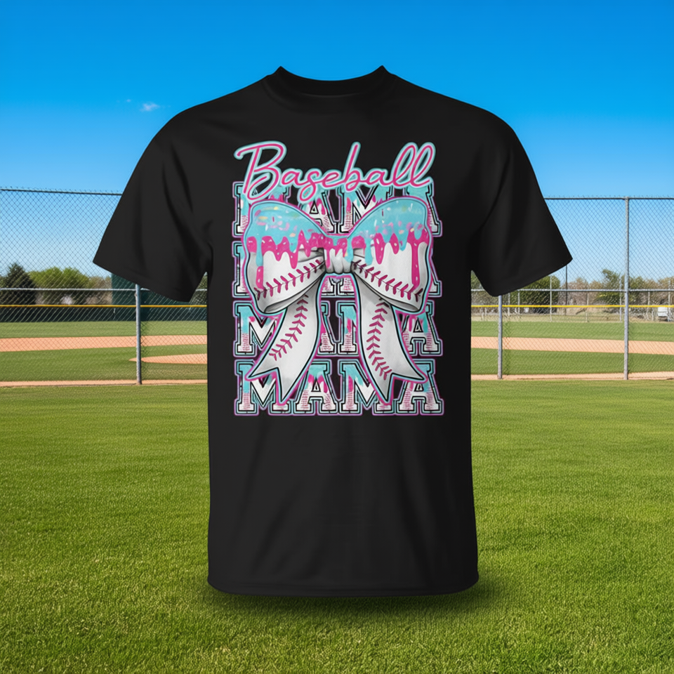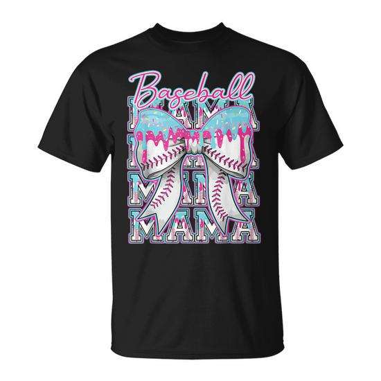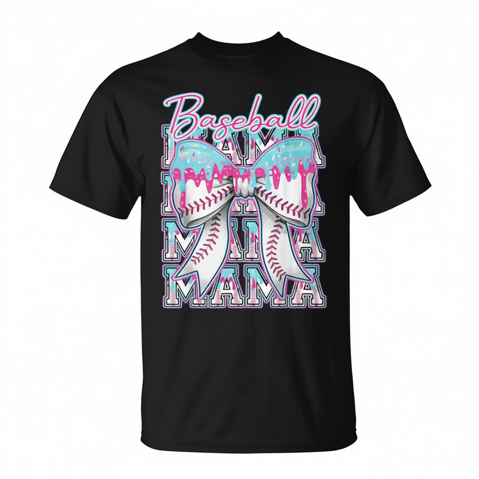 T-shirt Promozionale Coquette con Fiocco e Gelato che Gocciola, Stile Baseball, per Mamma