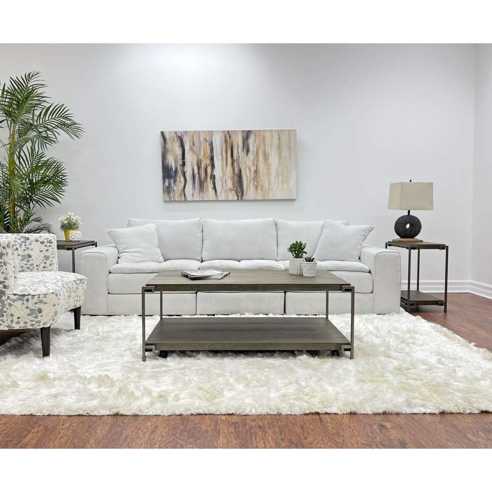Set da soggiorno Corbeta Aged Graphite in 3 pezzi con struttura in metallo, tavolino in legno e 2 tavolini laterali